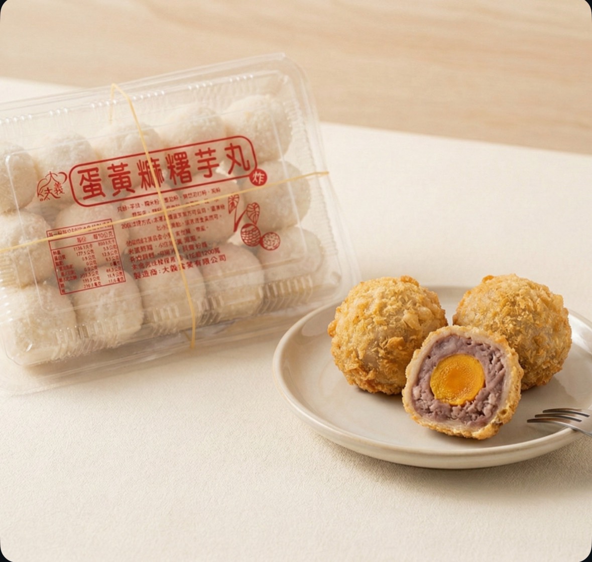●成分:芋頭、蛋黃、麵粉、糯米粉、香酥粉、砂糖、鹽、沙拉油